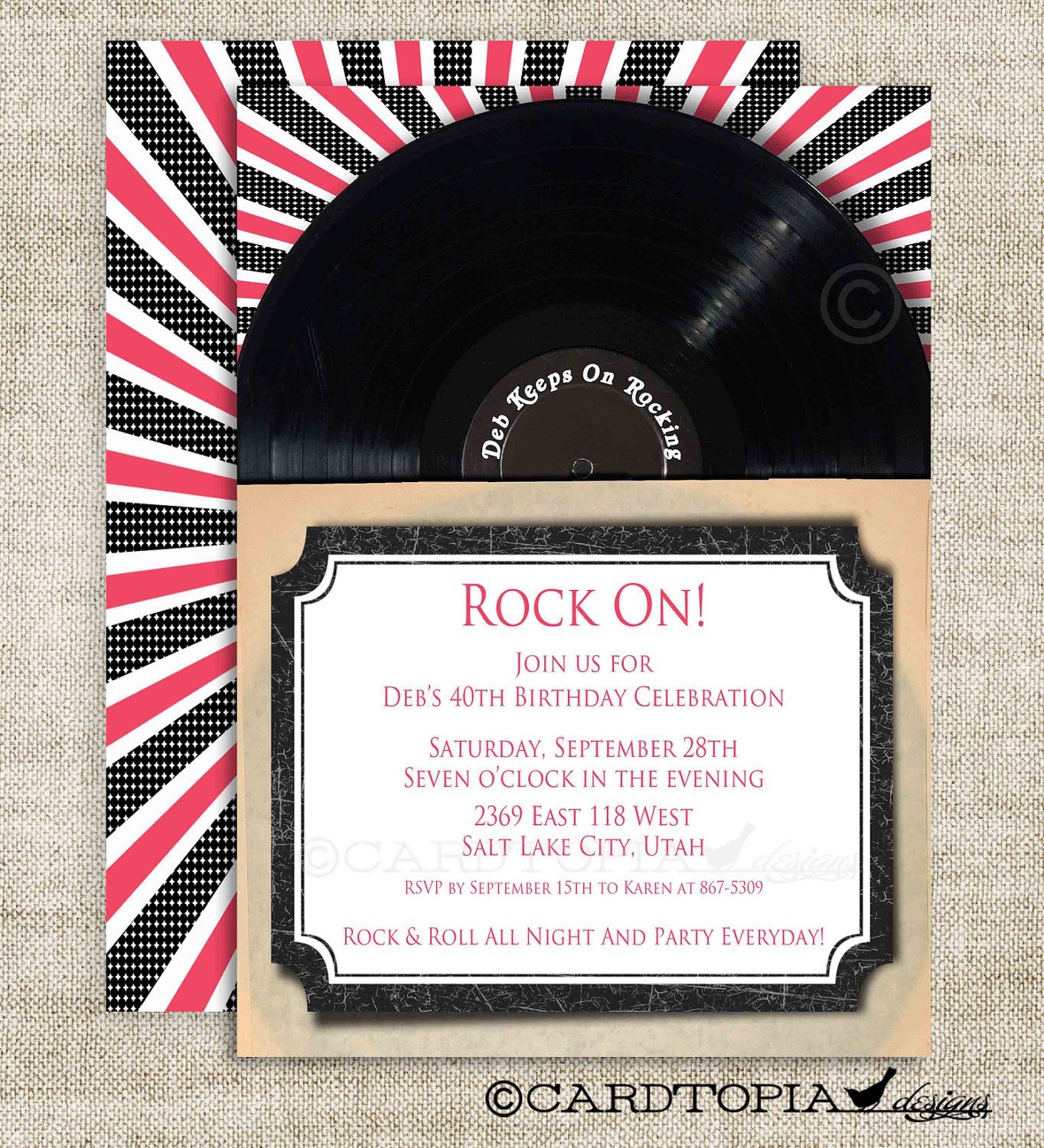 Don’t settle for boring, generic invitations when you can have custom-designed rock n roll party invitations that will get everyone excited for the event. Get ready to rock out with your friends and make memories that will last a lifetime!