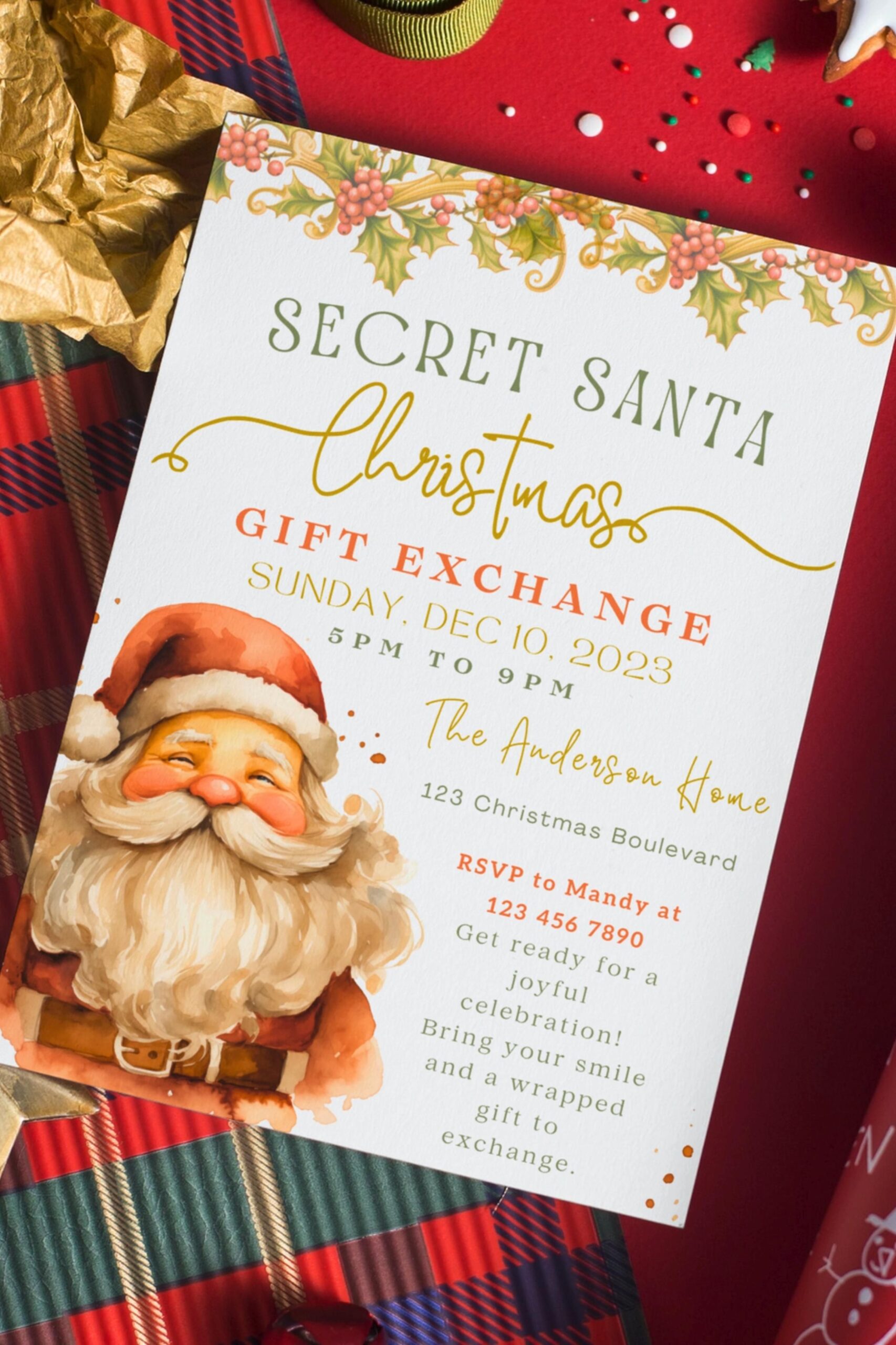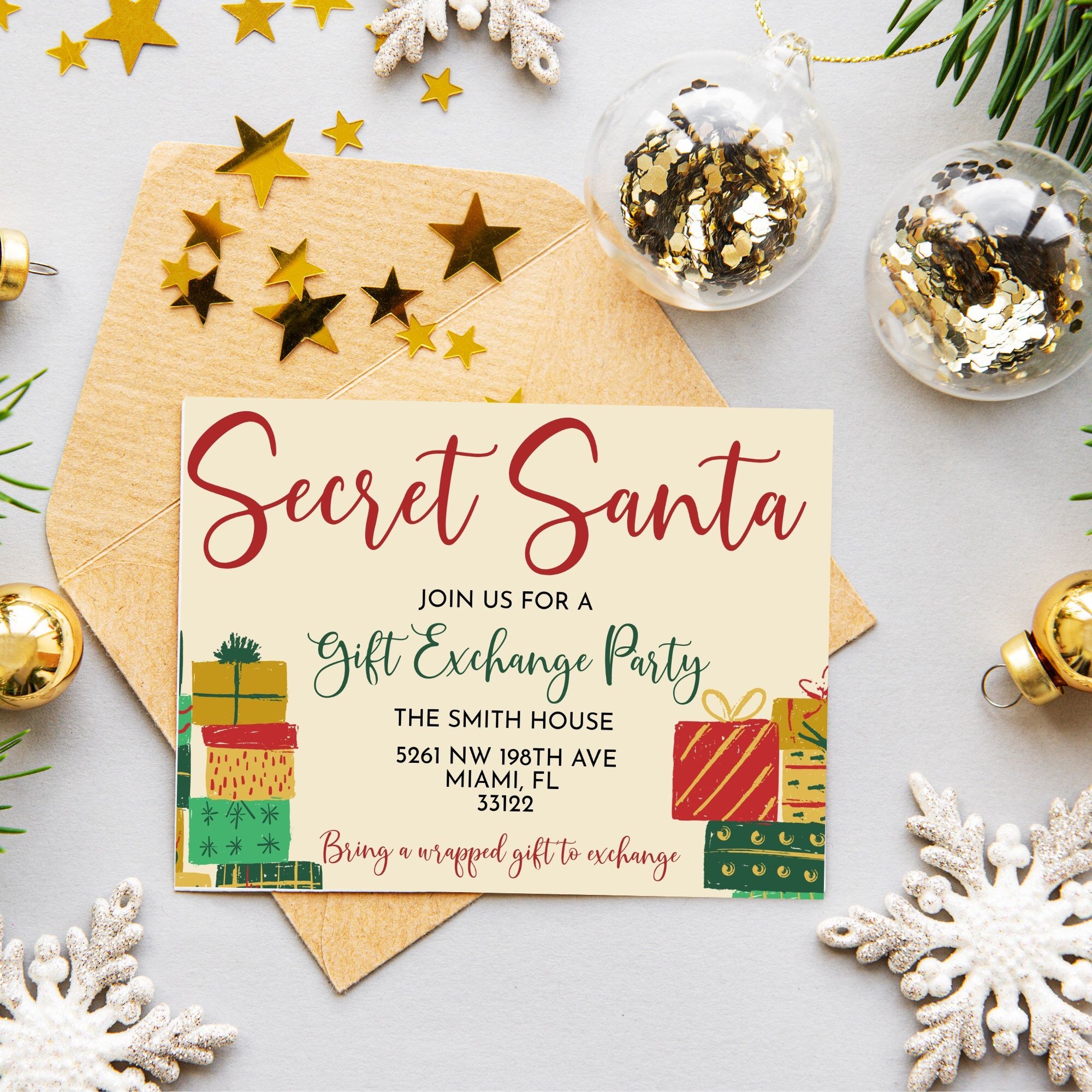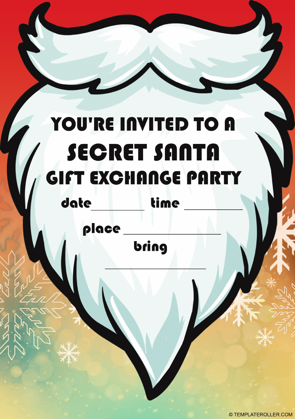 Invite your loved ones to join in the merry-making and gift-giving fun of a Secret Santa exchange with our free invitation template. With just a few clicks, you can have personalized invitations ready to go, ensuring that everyone is excited and ready to participate in the holiday fun. Download our template today and get ready to spread some holiday cheer!