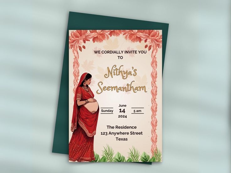 Make your Seemantham celebration memorable with our free invitation template. With its customizable features and beautiful design options, you can easily create invitations that capture the essence of this special occasion. Download our template now and get ready to welcome your new bundle of joy with love and blessings from your near and dear ones!