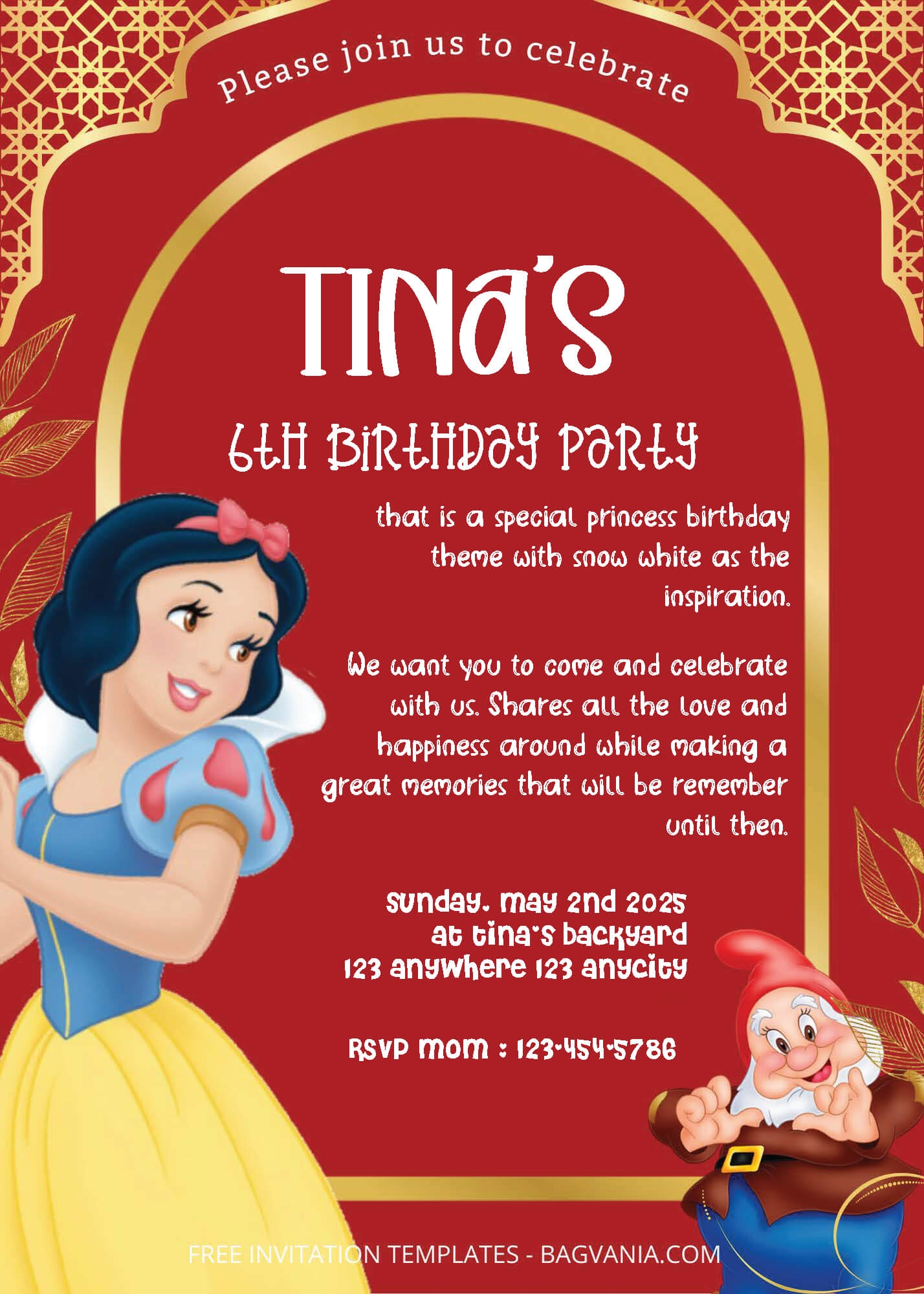 So why wait? Start browsing our collection of free Snow White birthday invitation templates today and get ready to host the most enchanting party for your little princess. Let the magic of Snow White bring joy and smiles to everyone who receives your beautiful invitations.