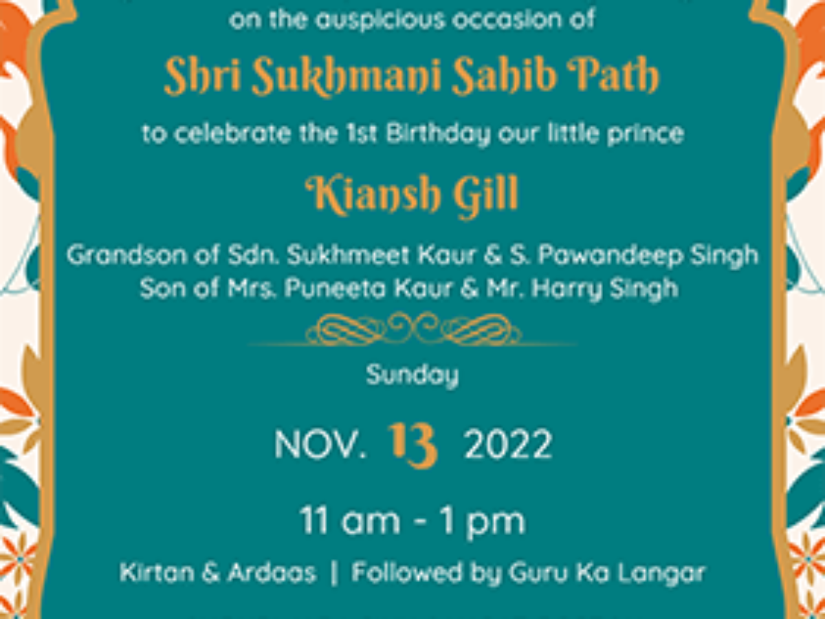 Whether you’re hosting a small and intimate Sukhmani Sahib Path ceremony or a grand and lavish event, our invitation templates can help set the tone and make a lasting impression on your guests. From traditional fonts and motifs to contemporary designs, you’ll find the perfect template to match the vibe of your event and make it truly special.