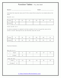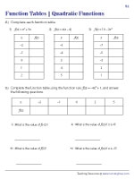 Function tables worksheets typically consist of a table with columns for input and output values. Students are given a function rule and are asked to complete the table by filling in the missing values. This process helps students to identify patterns and make connections between different variables, strengthening their problem-solving abilities.