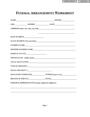 A funeral planning worksheet is a document that helps you organize all the details of a funeral, from choosing a casket to selecting music and readings for the service. It can serve as a guide to ensure that nothing is overlooked and that everything is taken care of in a timely manner.