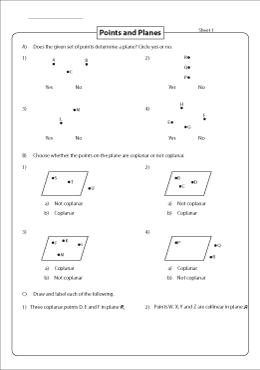 Geometry worksheets on points, lines, and planes help students practice identifying and understanding these basic concepts. These worksheets may include exercises such as identifying points on a coordinate plane, drawing lines through given points, and identifying different types of angles formed by intersecting lines.