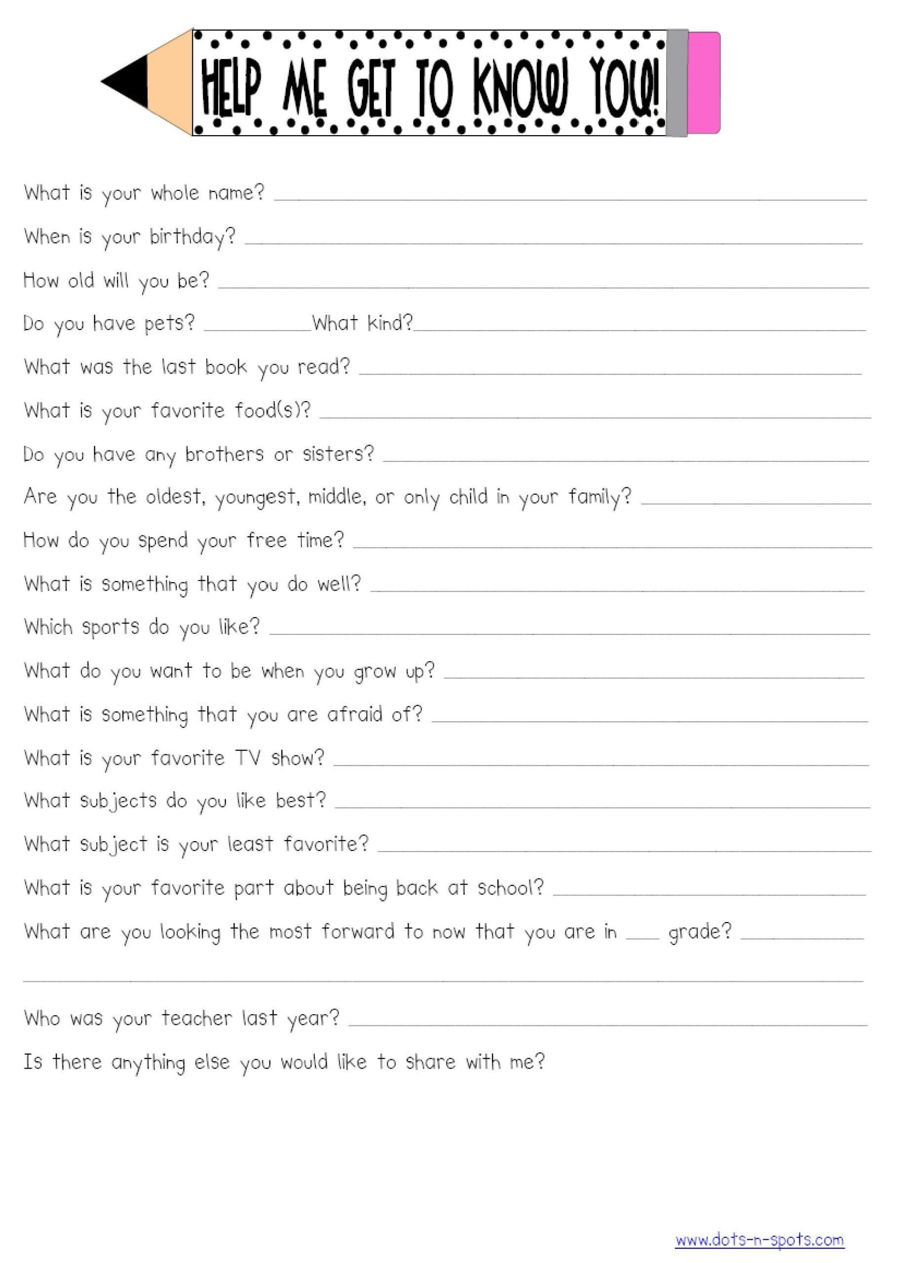 These worksheets typically include questions about students’ interests, hobbies, family, and goals for the school year. It’s a great way for students to share a little bit about themselves and for the teacher to get a better understanding of who they are. Some teachers may also include questions about students’ preferred learning styles or any concerns they may have about the upcoming school year.