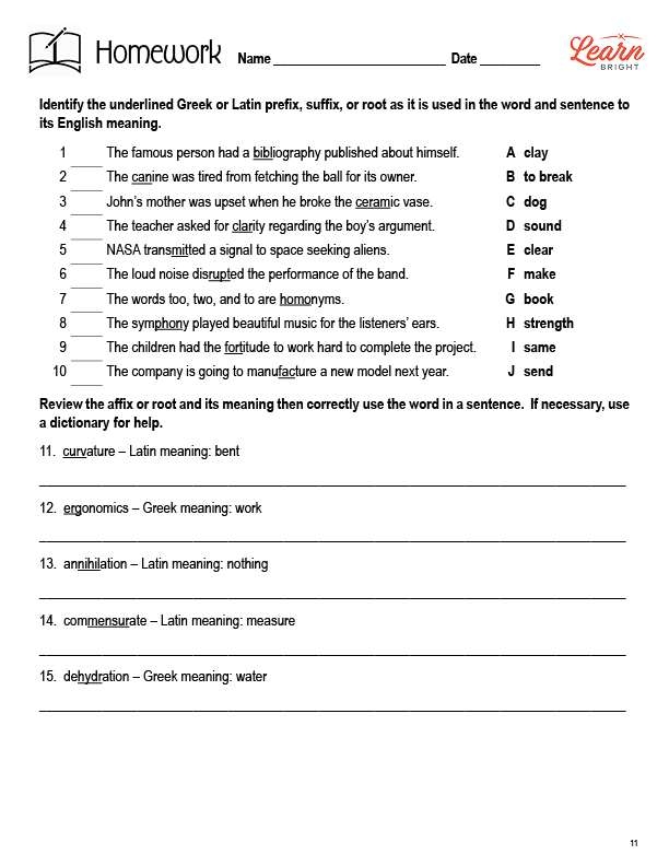 Working on a Greek Latin roots worksheet offers several benefits to students of all ages. Firstly, it encourages critical thinking skills as learners analyze word structures to uncover their meanings. This process enhances problem-solving abilities and fosters a deeper understanding of language mechanics.