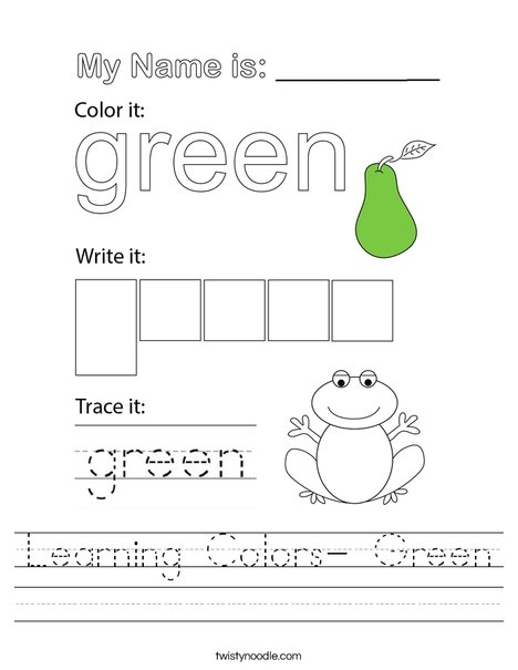 Learning Colors Green Worksheet Twisty Noodle Worksheets Library