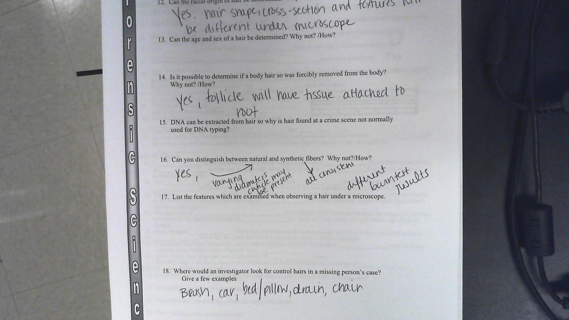 When it comes to forensic science, hair and fiber analysis plays a crucial role in solving crimes. The examination of hair and fibers found at a crime scene can provide valuable evidence that can help investigators identify suspects or link individuals to a particular location. One way to familiarize students with the techniques used in hair and fiber analysis is through the use of worksheets that cover various aspects of this forensic discipline.