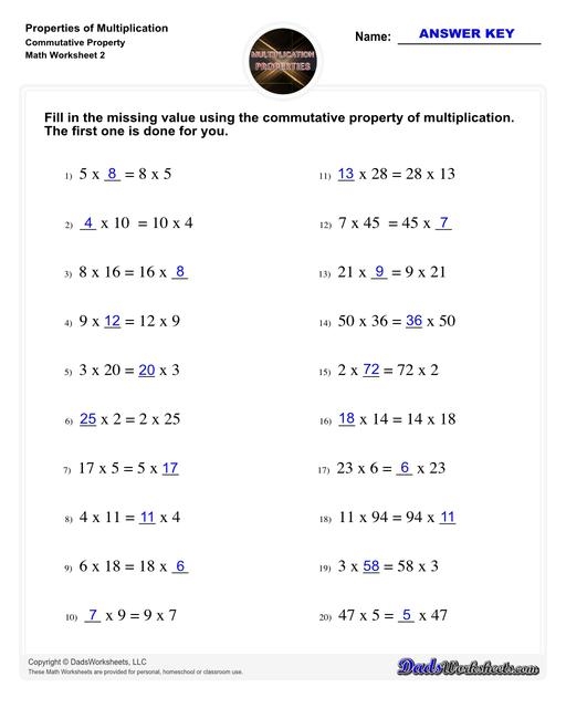 Properties Of Multiplication Math Worksheets Worksheets Library