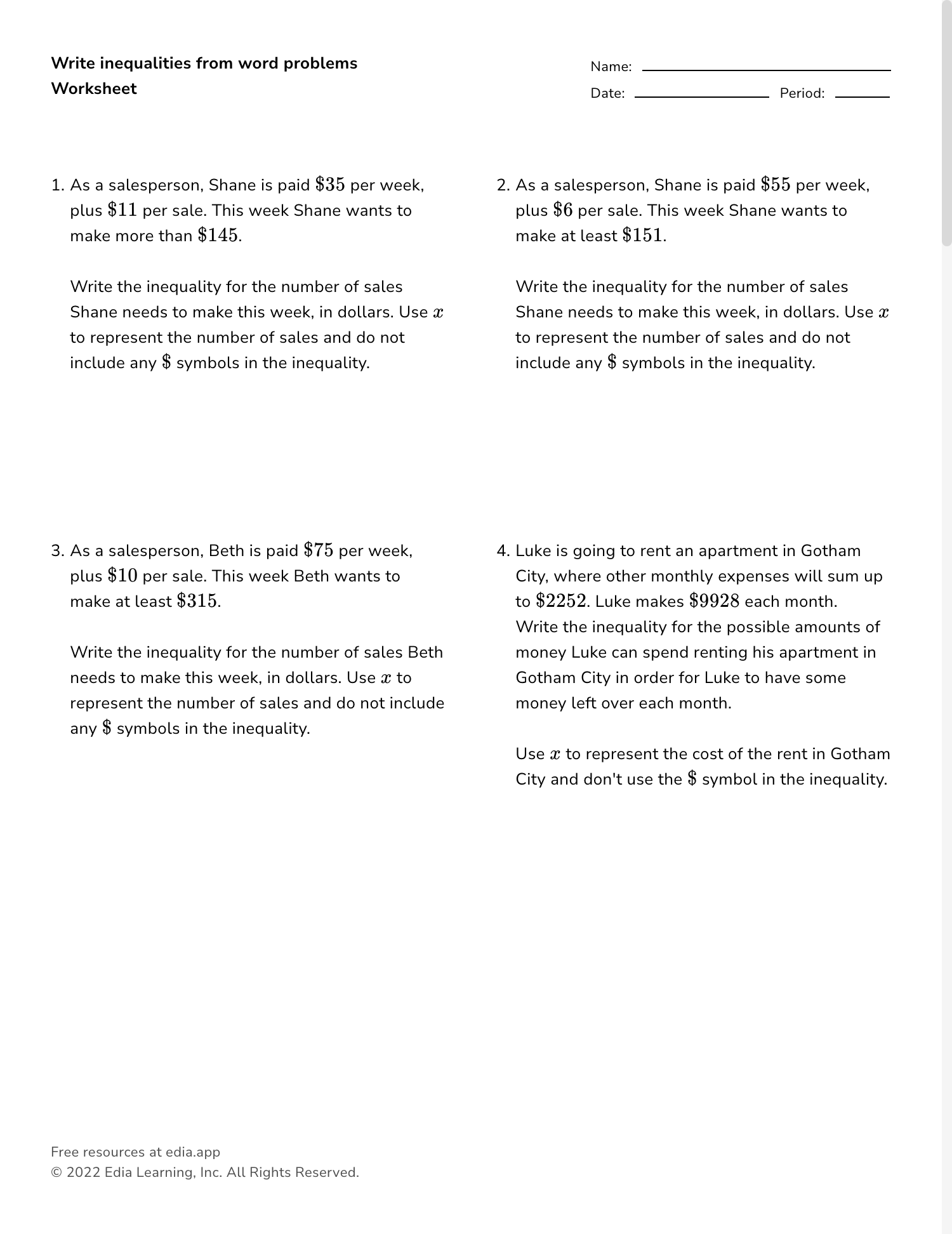 Inequalities Worksheet Word Problems Download and Print inequalities worksheet word problems Listed below