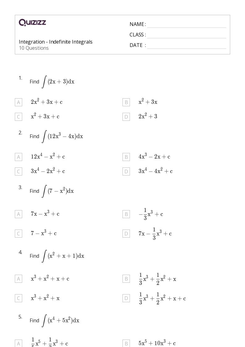 Download and Print integration worksheet Listed below