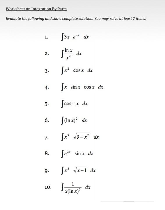 Integration Worksheet