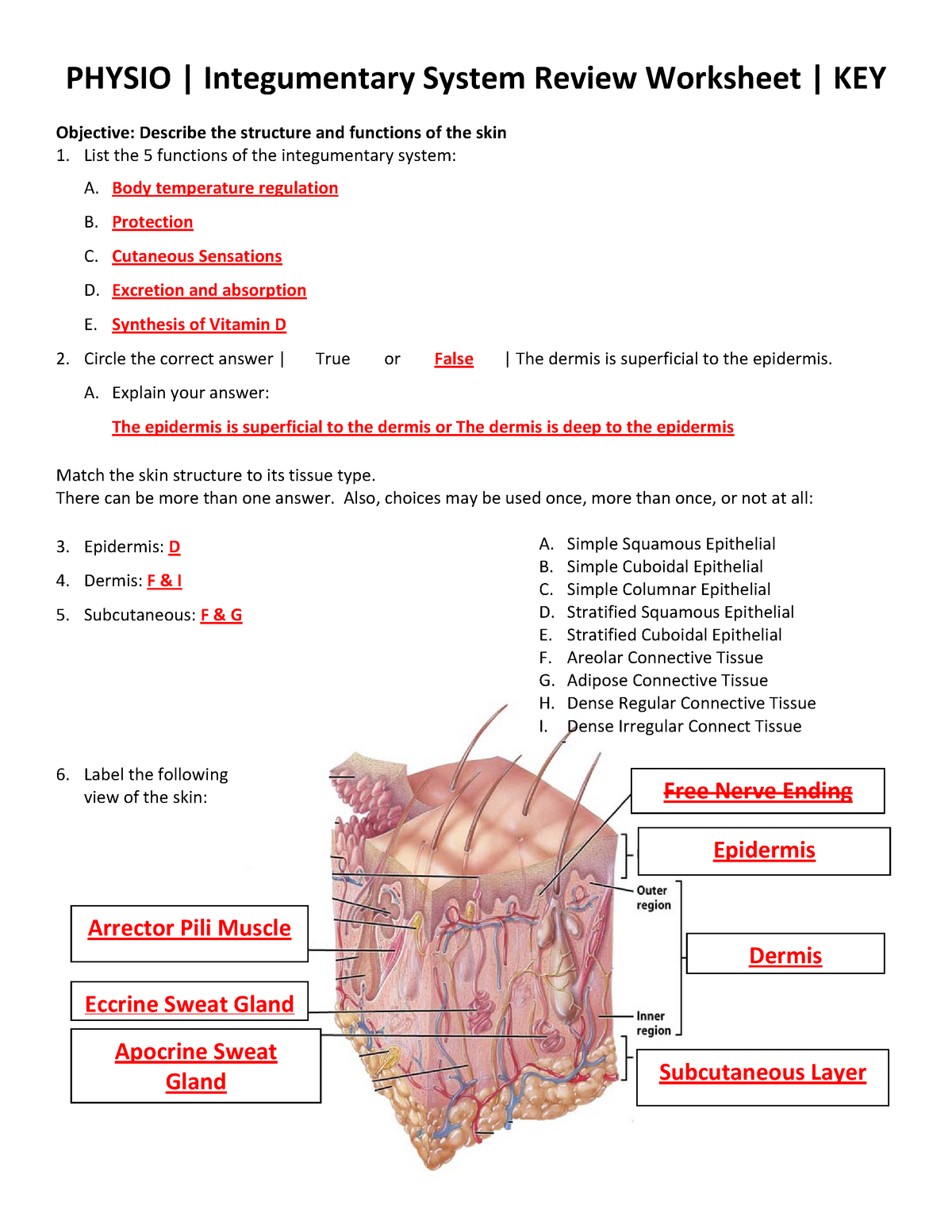Integumentary System Worksheet