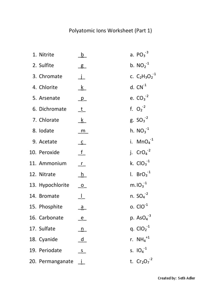 Ion Worksheet