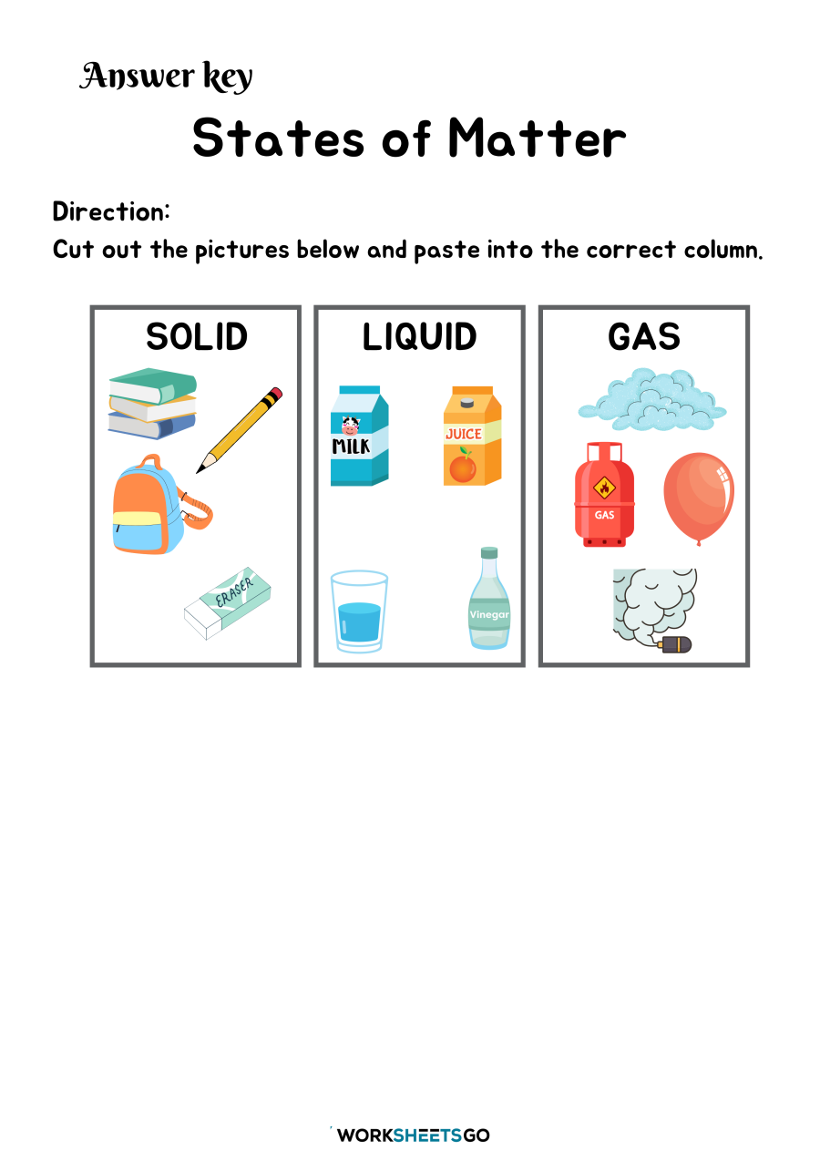 Furthermore, matter worksheets help students develop critical thinking skills. By working through problems and scenarios related to matter, students learn to analyze information, make predictions, and draw conclusions based on evidence. These skills are essential for scientific inquiry and problem-solving, and matter worksheets provide a structured way for students to practice and refine them.