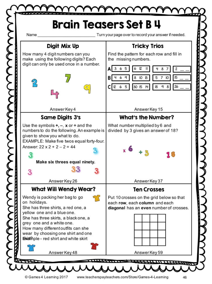 Download and Print mind puzzle worksheets Listed below