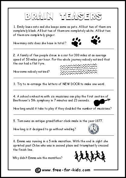 Download and Print mind teaser worksheets Listed below