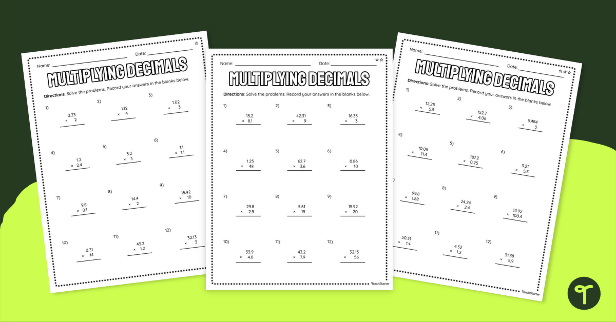 These problems require students to apply the rules of decimal multiplication, such as lining up the decimals and multiplying as if the numbers were whole numbers. By practicing these types of problems, students can improve their fluency in multiplying decimals and develop a stronger understanding of the process.