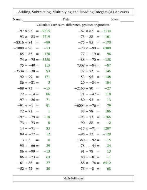 Adding Subtracting Multiplying And Dividing Mixed Integers From