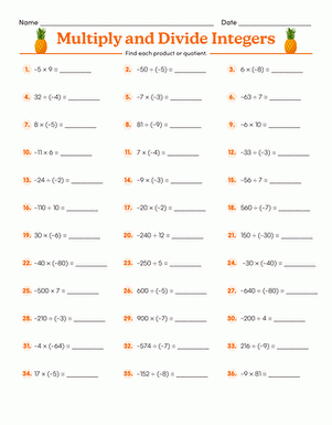 A multiply and divide integers worksheet typically consists of a series of problems that require students to multiply and divide integers. These worksheets may include a mix of positive and negative integers, challenging students to apply the rules for these operations accurately. By working through these worksheets, students can practice multiplying and dividing integers in different contexts and improve their proficiency in these operations.