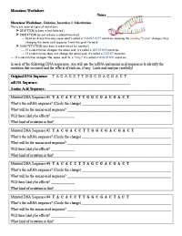 Mutations Worksheet Deletion Insertion And Substitution