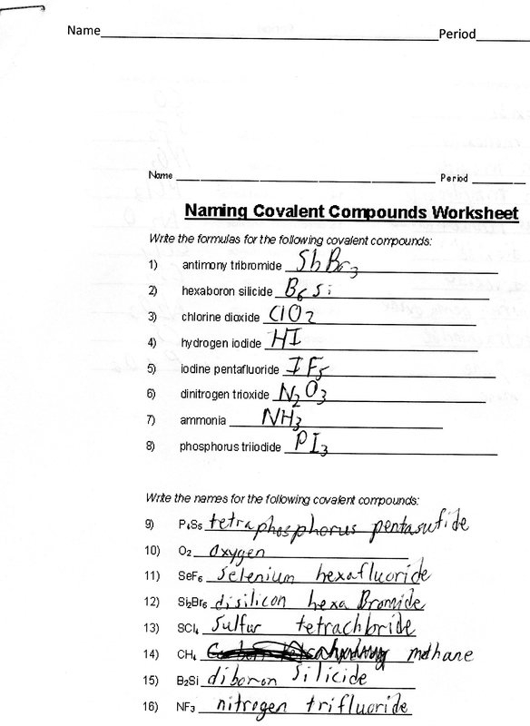 names of covalent compounds worksheet