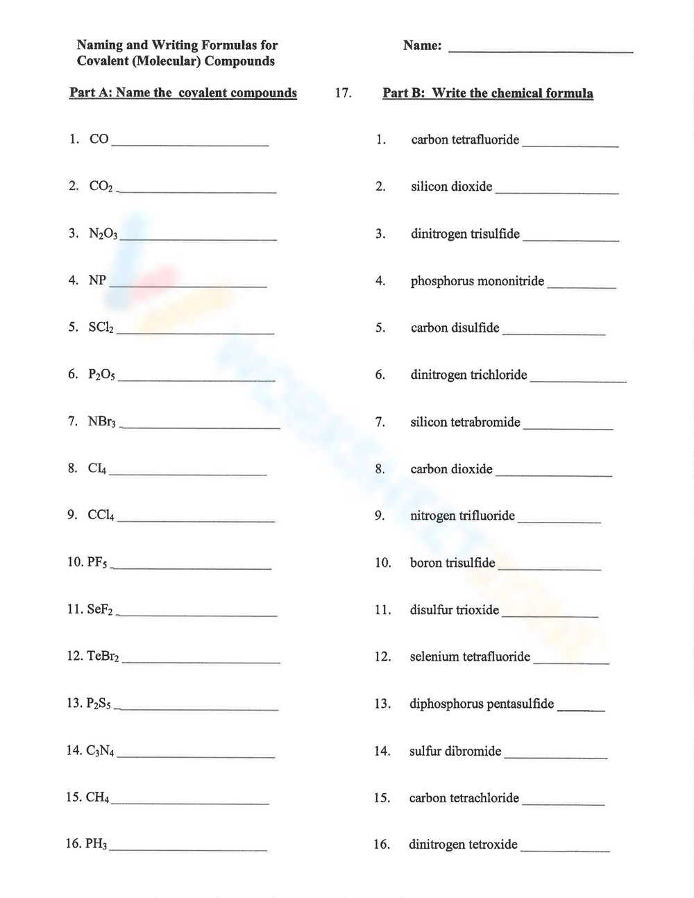 Download and Print names of covalent compounds worksheet Listed below