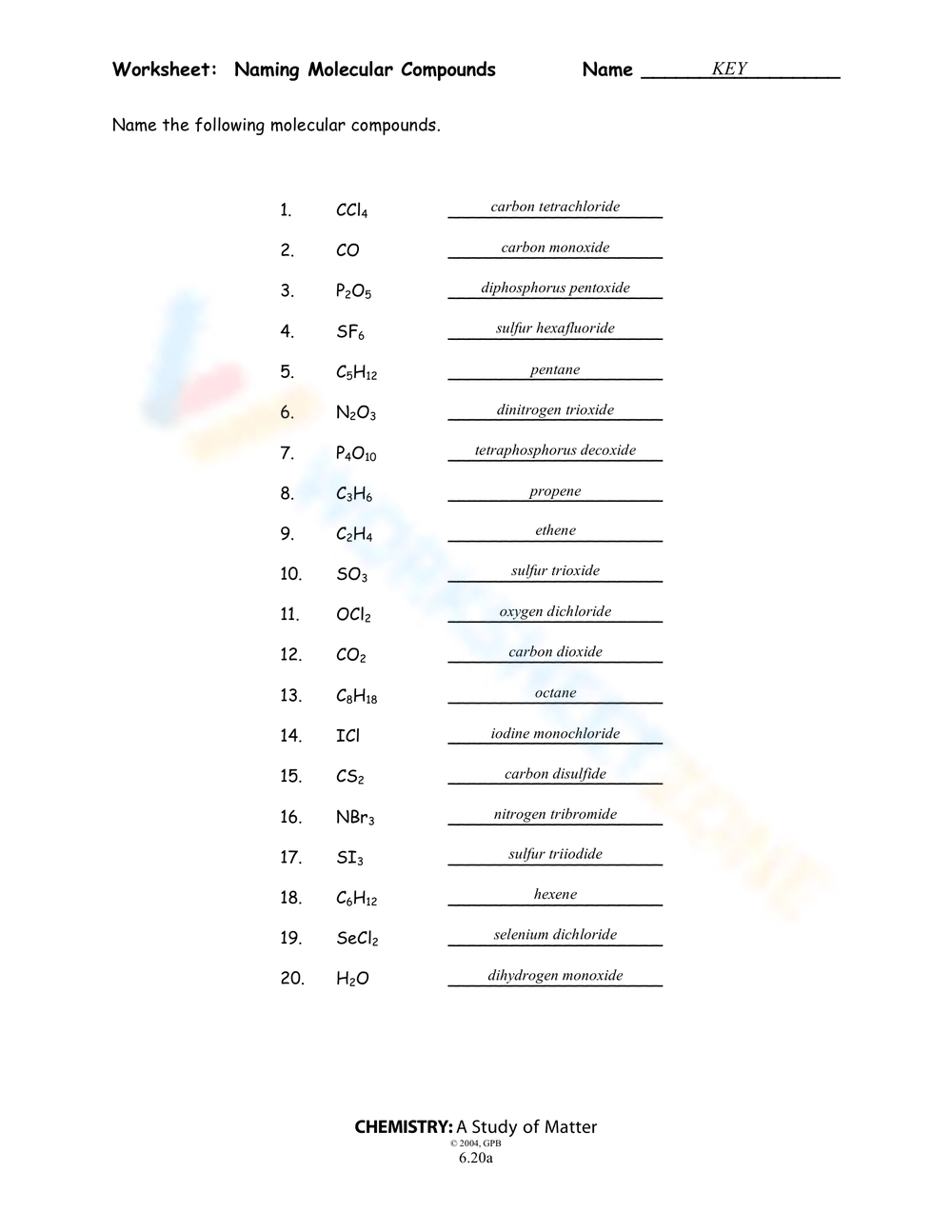 Another important rule for naming molecular compounds is that prefixes are used to indicate the number of each element present in the compound. For example, the prefix “mono-” is used to indicate one of a particular element, “di-” is used to indicate two, “tri-” is used to indicate three, and so on. By understanding these prefixes and how they are used, students can accurately name a wide range of molecular compounds.