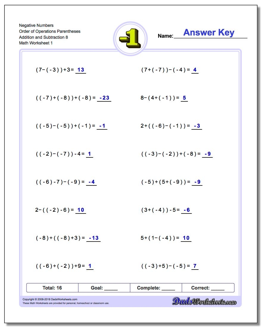 Additionally, negative addition and subtraction worksheets can help students develop problem-solving skills and critical thinking abilities. By working through different types of problems, students can learn to apply different strategies and techniques to find solutions. This can be particularly beneficial for students who struggle with math concepts.