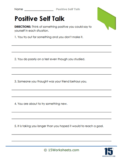 Another exercise on a negative self talk worksheet may involve creating affirmations or positive statements to counteract negative beliefs. By repeating these affirmations regularly, individuals can rewire their brains to focus on more empowering and uplifting thoughts. This can lead to a more positive mindset and improved self-esteem over time.