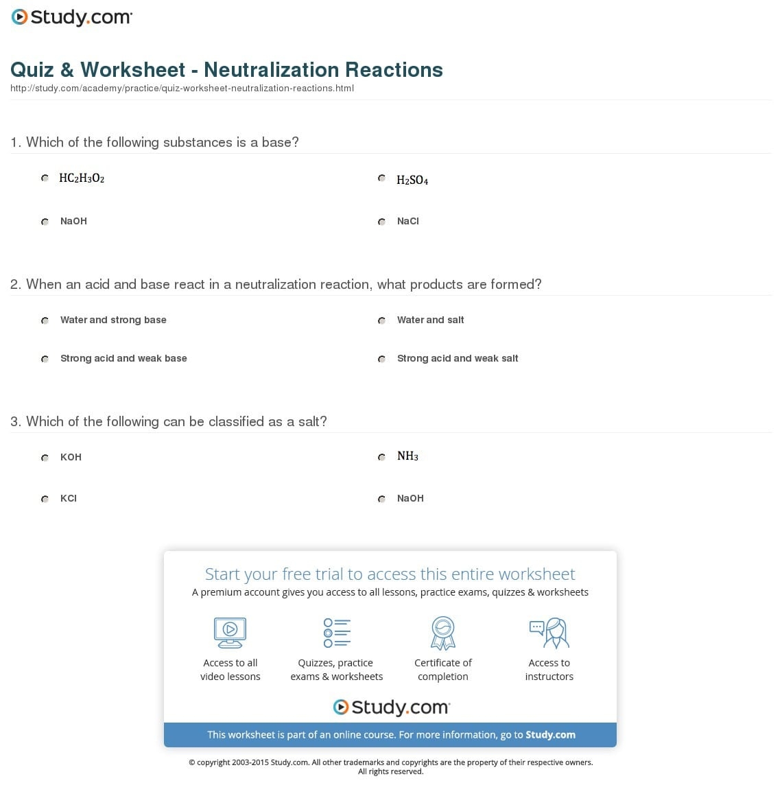 Quiz Worksheet Neutralization Reactions Study Db excel