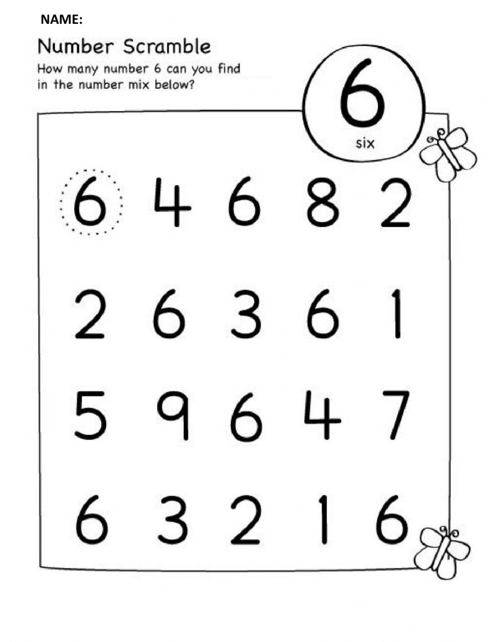 Number 6 Worksheet