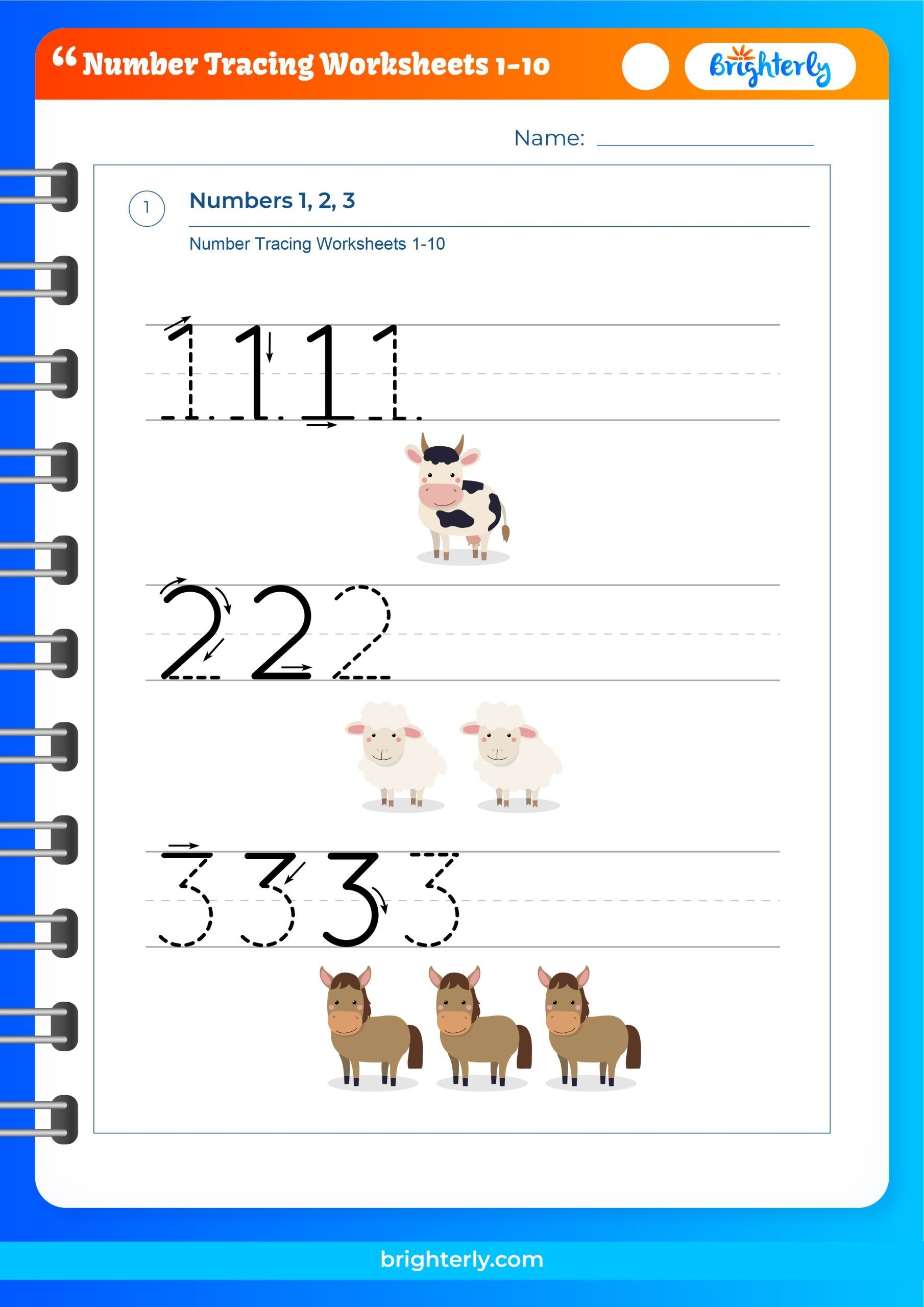 Free Number Tracing Worksheets 1 10 For Kids PDFs Brighterly