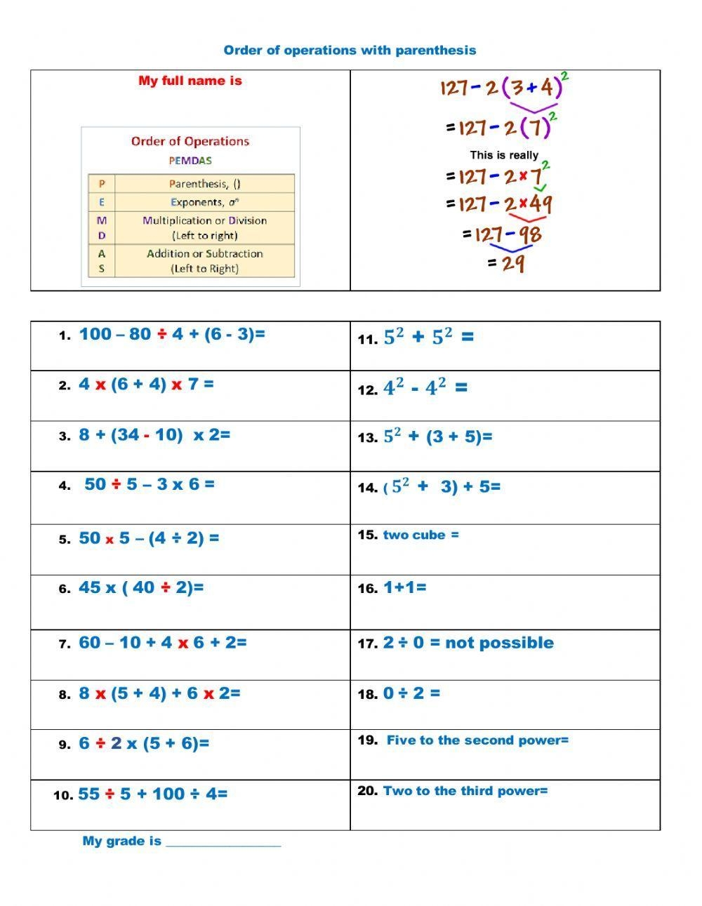 Exponents can significantly impact the outcome of a mathematical expression, so it is crucial to understand how to handle them correctly. The Order of Operations with Exponents Worksheet PDF provides ample opportunities for students to practice and reinforce their skills in this area. By consistently working through these worksheets, students can build confidence and proficiency in dealing with exponents.