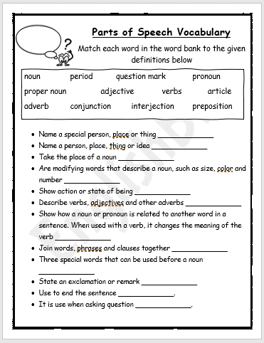 These worksheets typically include various exercises such as identifying the part of speech of given words, filling in blanks with the correct parts of speech, and constructing sentences using specific parts of speech. The answers provided in the PDF format allow students to check their work and track their progress.