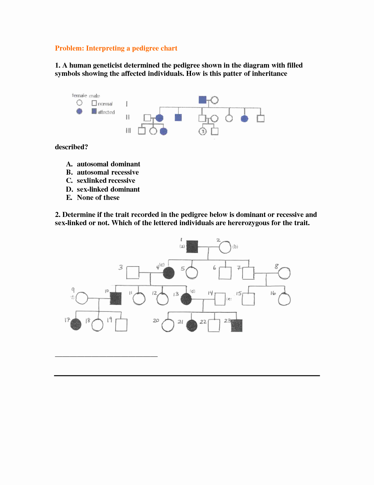 Pedigree Worksheet and Answers