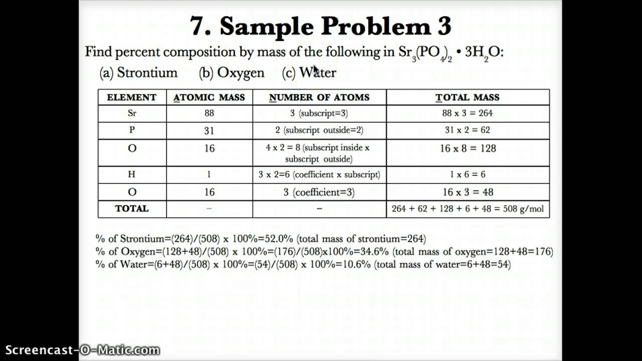 Percentage Composition = (Mass of Element / Molecular Mass of Compound) x 100%