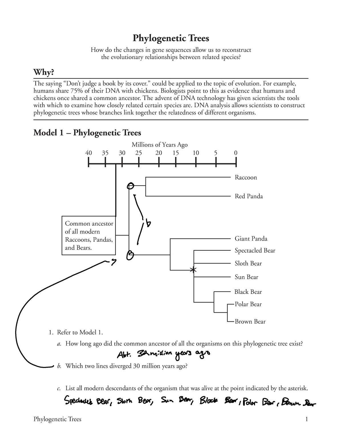 Phylogenetic Tree Worksheet POGIL