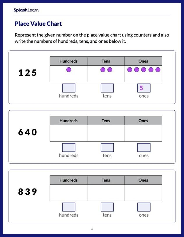 One type of place value worksheet for 3rd graders involves identifying the value of digits in a number. Students are given a number and asked to determine the value of a specific digit, such as the tens or hundreds place. This helps them understand the significance of each digit in a number and how it contributes to the overall value.