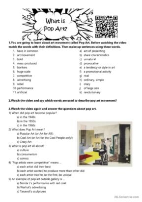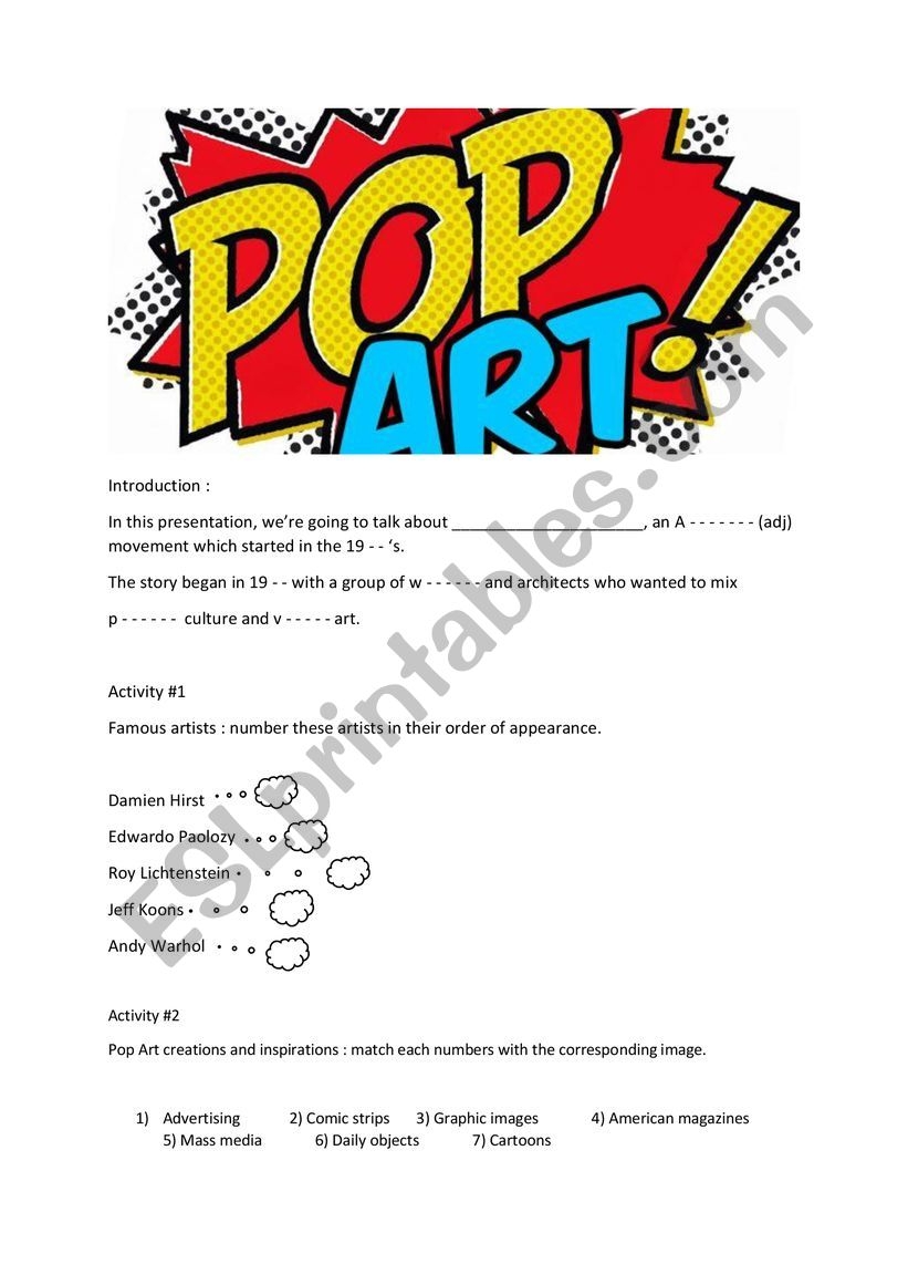 7 Pop Art English ESL Worksheets Pdf Doc Worksheets Library