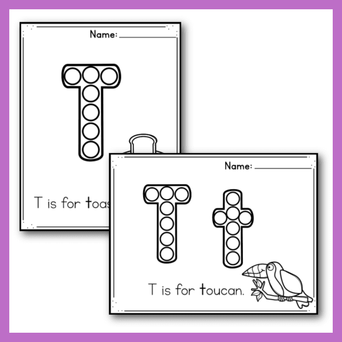 Another fun activity in these worksheets is finding the hidden letter T’s. Children will have to search through a mix of letters to find and circle all the T’s. This activity not only helps with letter recognition but also improves visual discrimination skills. Additionally, there are puzzles and mazes that incorporate the letter T, making learning a hands-on and enjoyable experience for preschoolers.