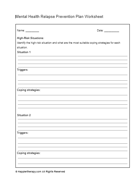 In addition to identifying triggers, relapse prevention worksheets can help individuals develop coping skills. These skills may include stress management techniques, healthy ways to deal with emotions, and strategies for handling cravings. By practicing these skills, individuals can build their resilience and reduce the risk of relapse.