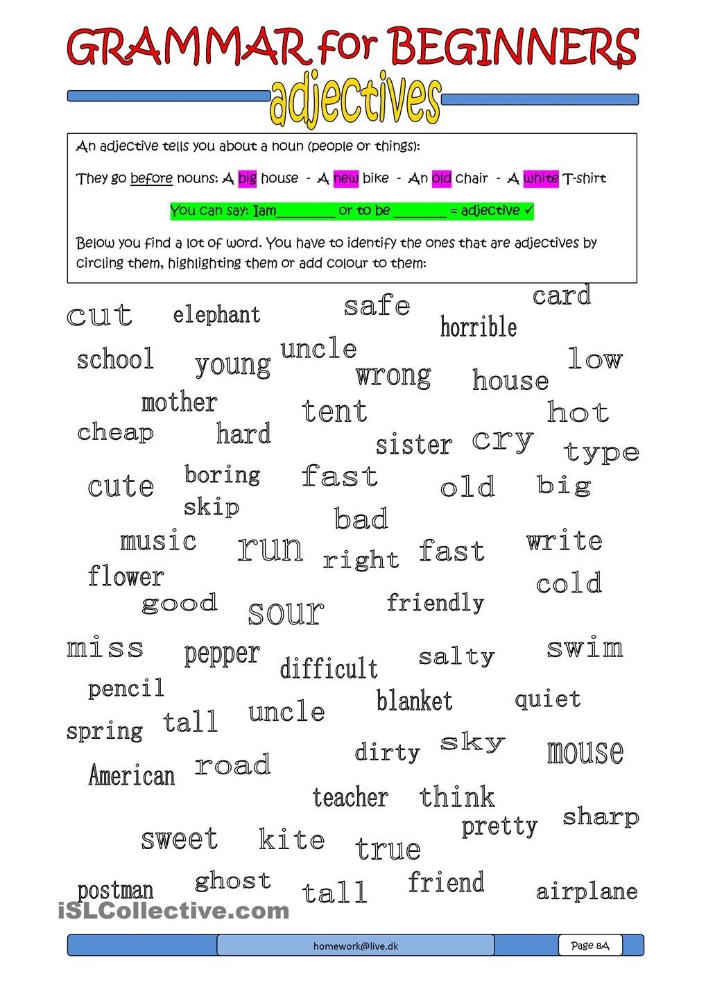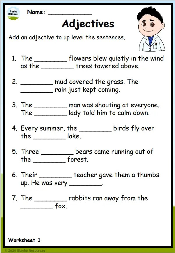 1. Practice identifying adjectives: Printable worksheets provide students with opportunities to practice identifying adjectives in sentences. This can help them develop a better understanding of how adjectives function in language.