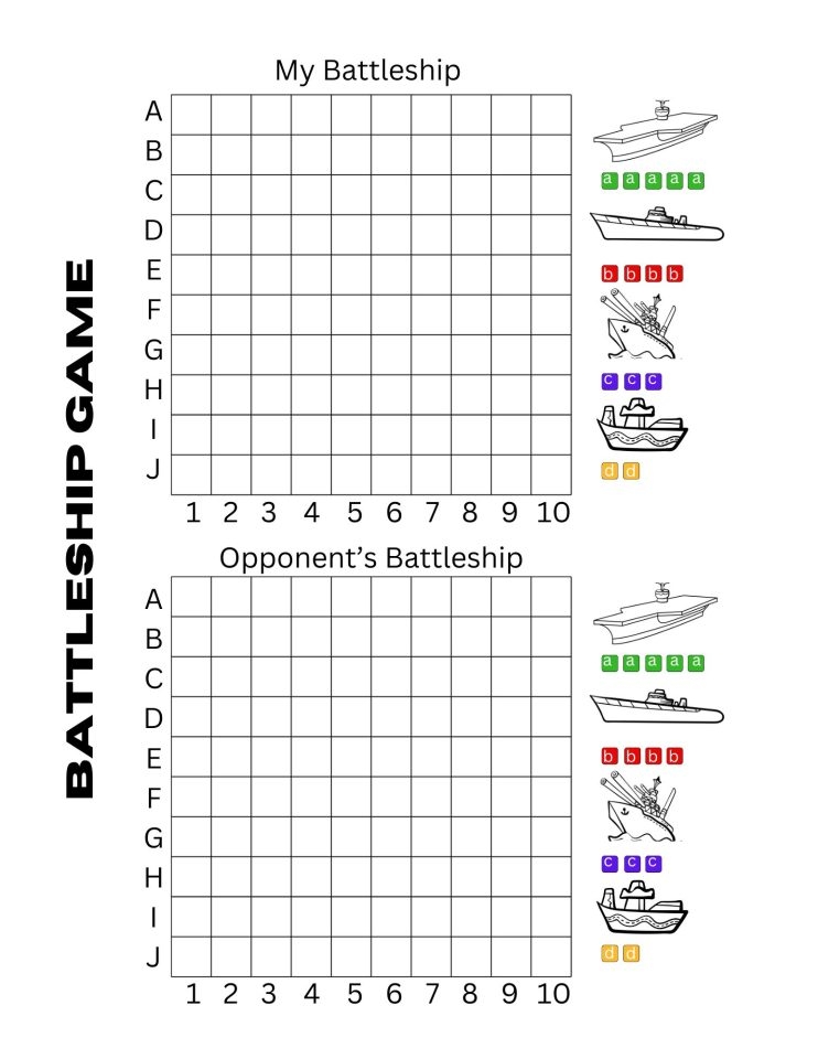 Download and Print printable battleship game board Listed below