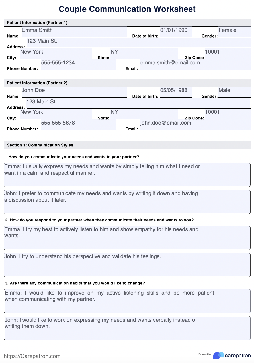 These worksheets are designed to help couples improve their communication skills, deepen their understanding of each other, and strengthen their relationship. They provide a structured way for couples to engage in meaningful conversations and address any issues or concerns they may have. By using these worksheets, couples can learn how to communicate effectively, resolve conflicts, and build trust and intimacy.