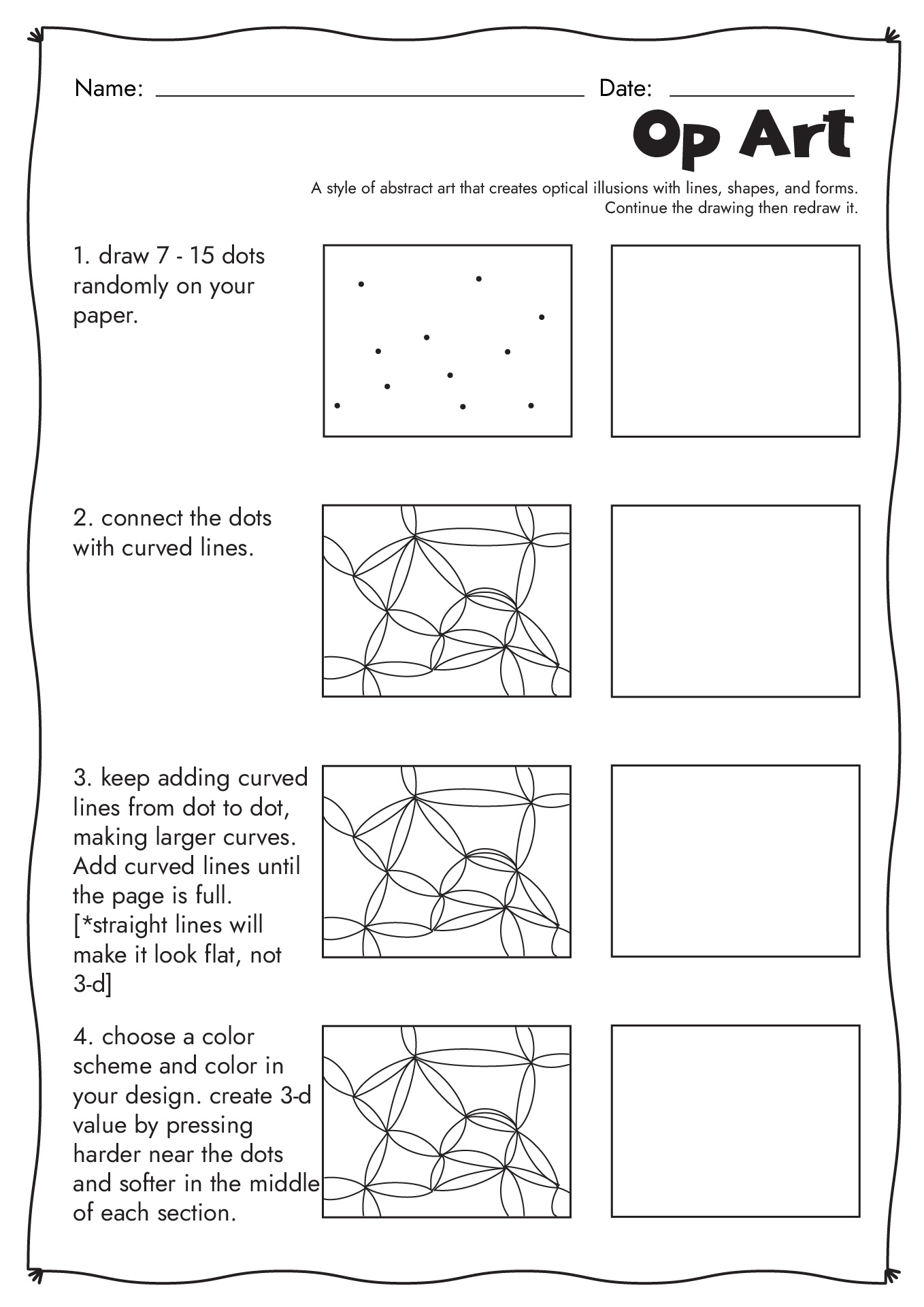 Overall, printable op art worksheets are a fun and engaging way to introduce students to the world of optical art. By providing students with the opportunity to create their own op art designs, these worksheets can help foster a love of art and design in students of all ages.