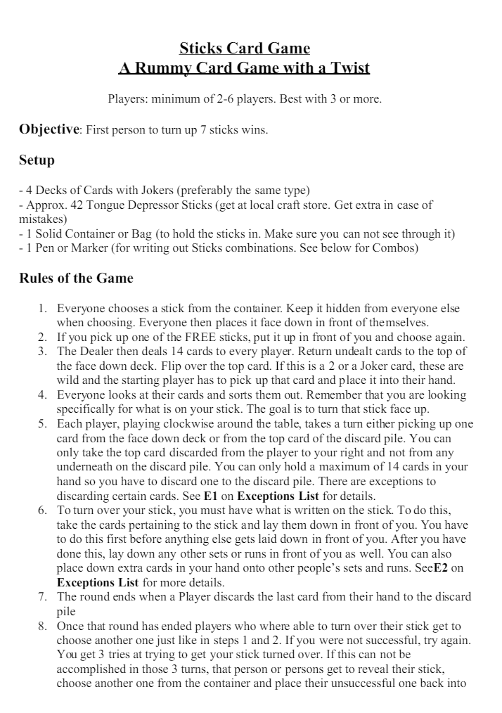 Here are the basic rules of the Printable Sticks Card Game: