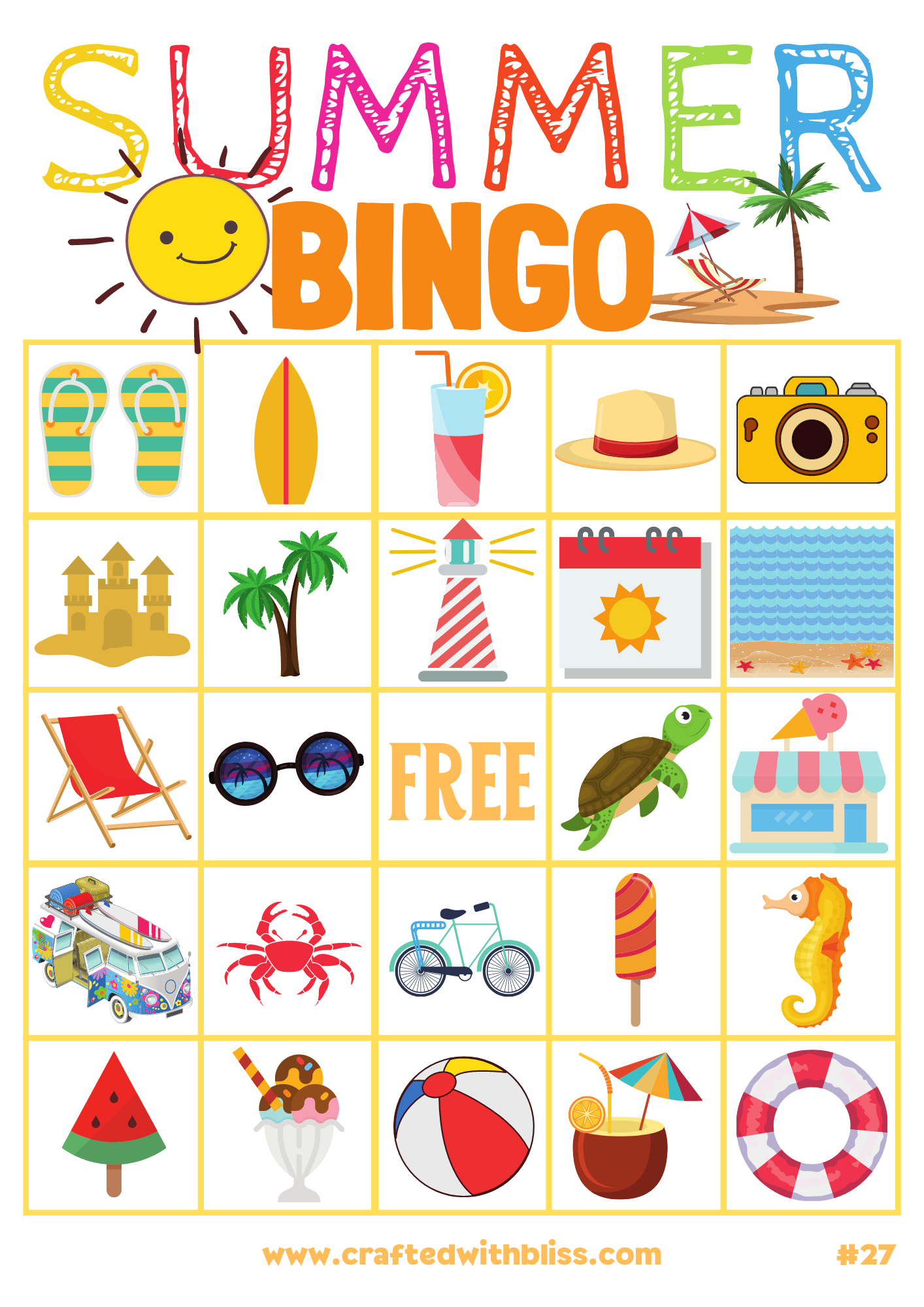 Download and Print printable summer bingo cards Listed below