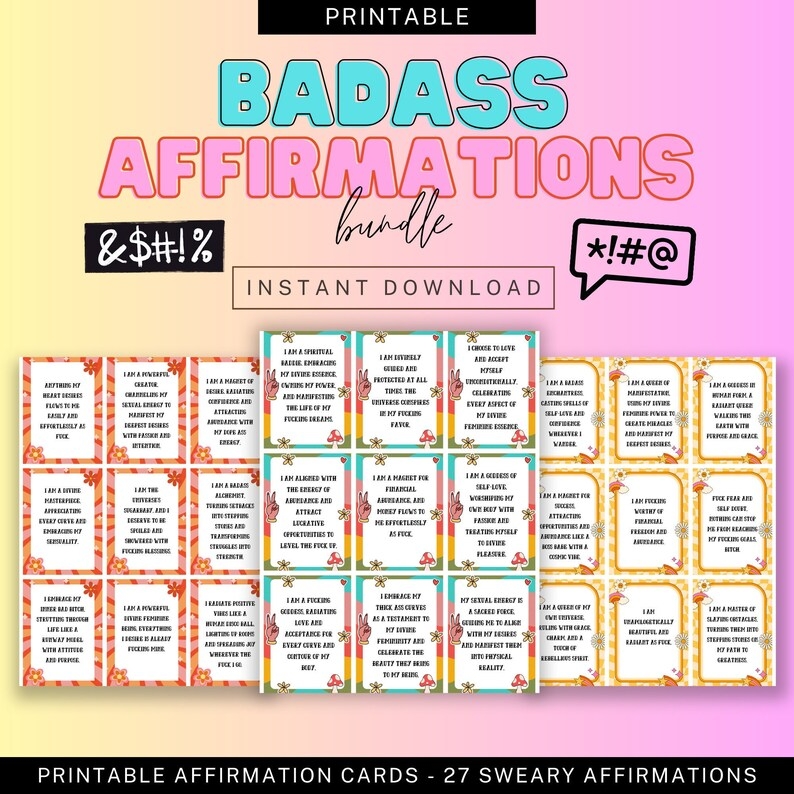 So why settle for boring, run-of-the-mill affirmations when you can spice things up with some sweary flair? Download your printable sweary affirmation cards today and start kicking ass and taking names like the badass you are!