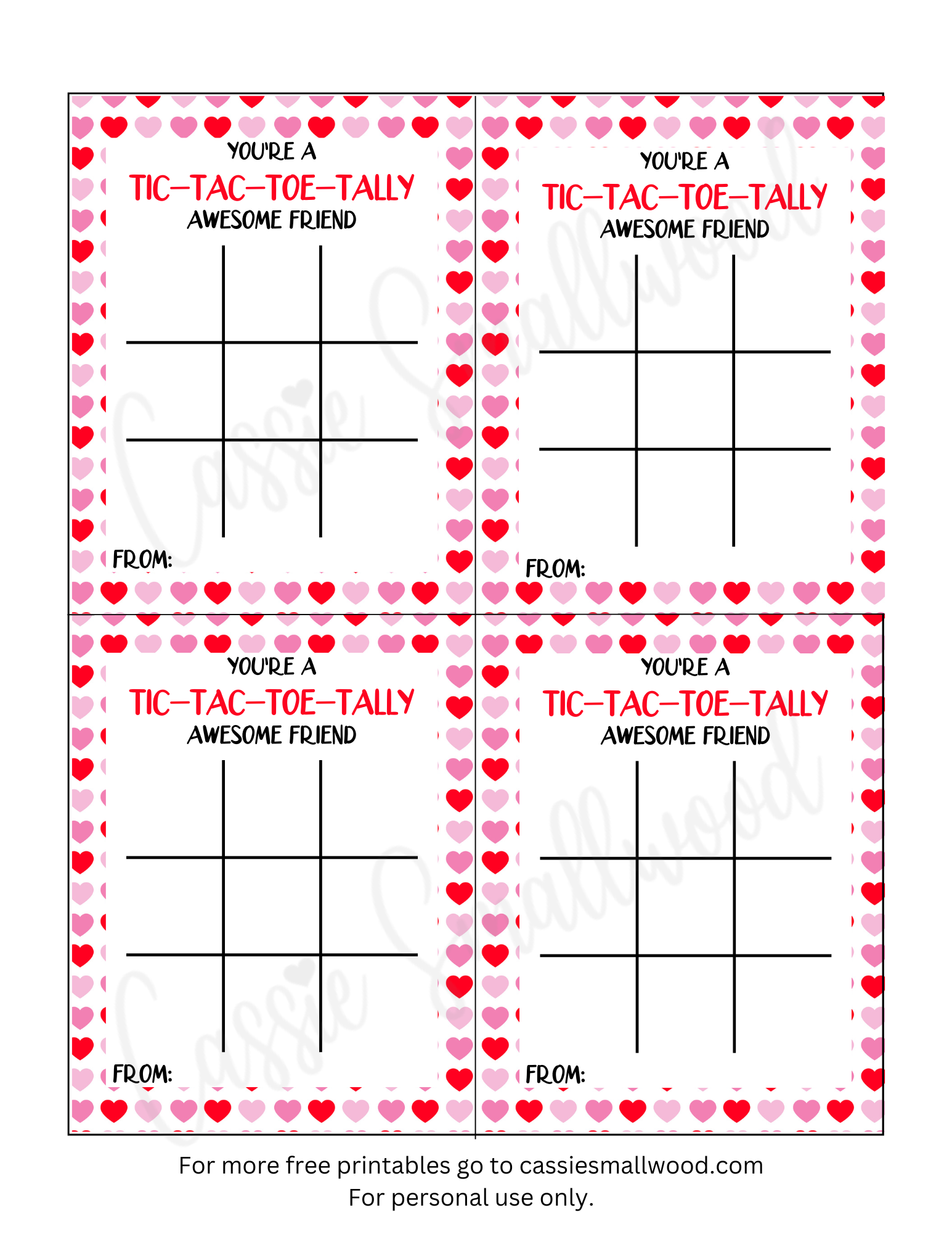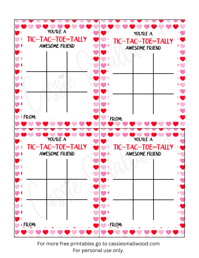 Whether you’re looking for a unique Valentine’s Day gift or just want to spread some love and positivity, printable tic tac toe Valentine cards are a great choice. They’re fun, easy to make, and sure to brighten someone’s day. So why not add a little extra love to this special day with these charming cards?